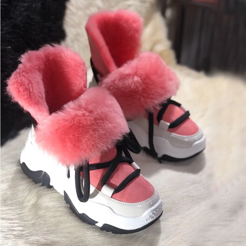 Female Snow Boots 2019 Genuine Leather Winter Boots women flat Plush Ankle boots platform Non-slip Keep warm Women cotton shoes :Click Here