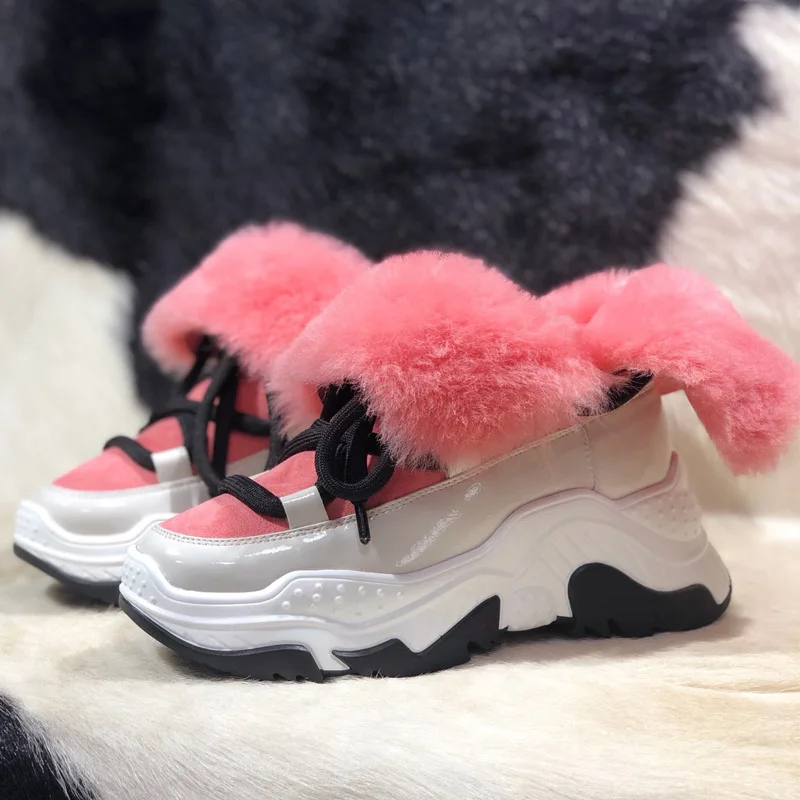 Genuine Leather Female Wool snow boots Mirror waterproof short tube Ankle boots 2019 New Plush Keep warm Women's Winter boots :Click Here