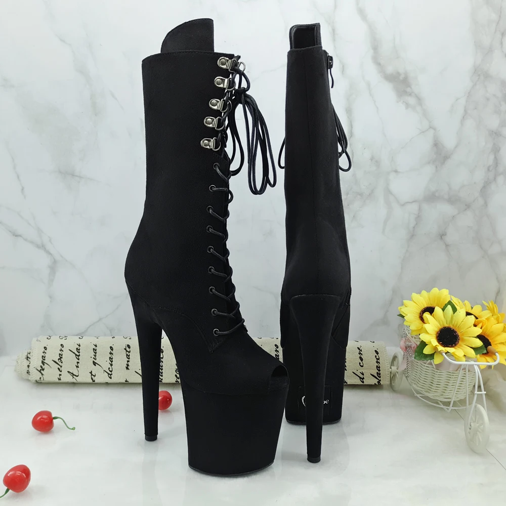 Post a Comment for "Latest Product Leecabe Newest 20CM/8inches Pole dancing shoes with black suede High Heel platform Boots open toe P "