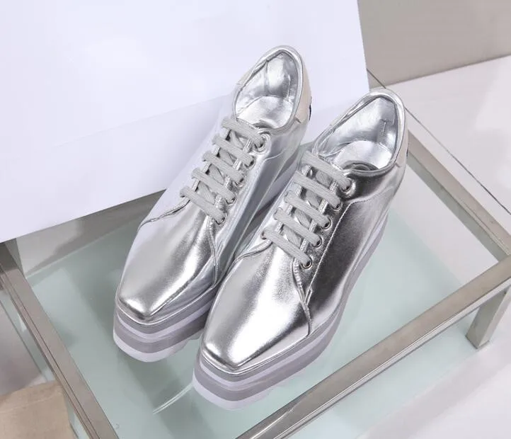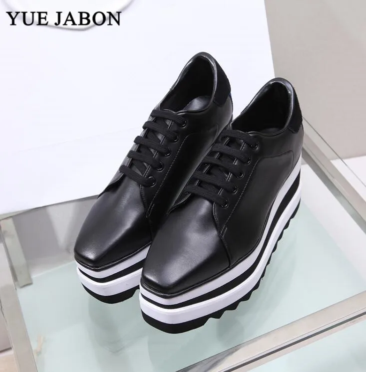 Black White golden silver five Stars Shoes Women high quality Square Toe lace-up thick Bottom Platform Wedge heel Causal Shoes :Click Here