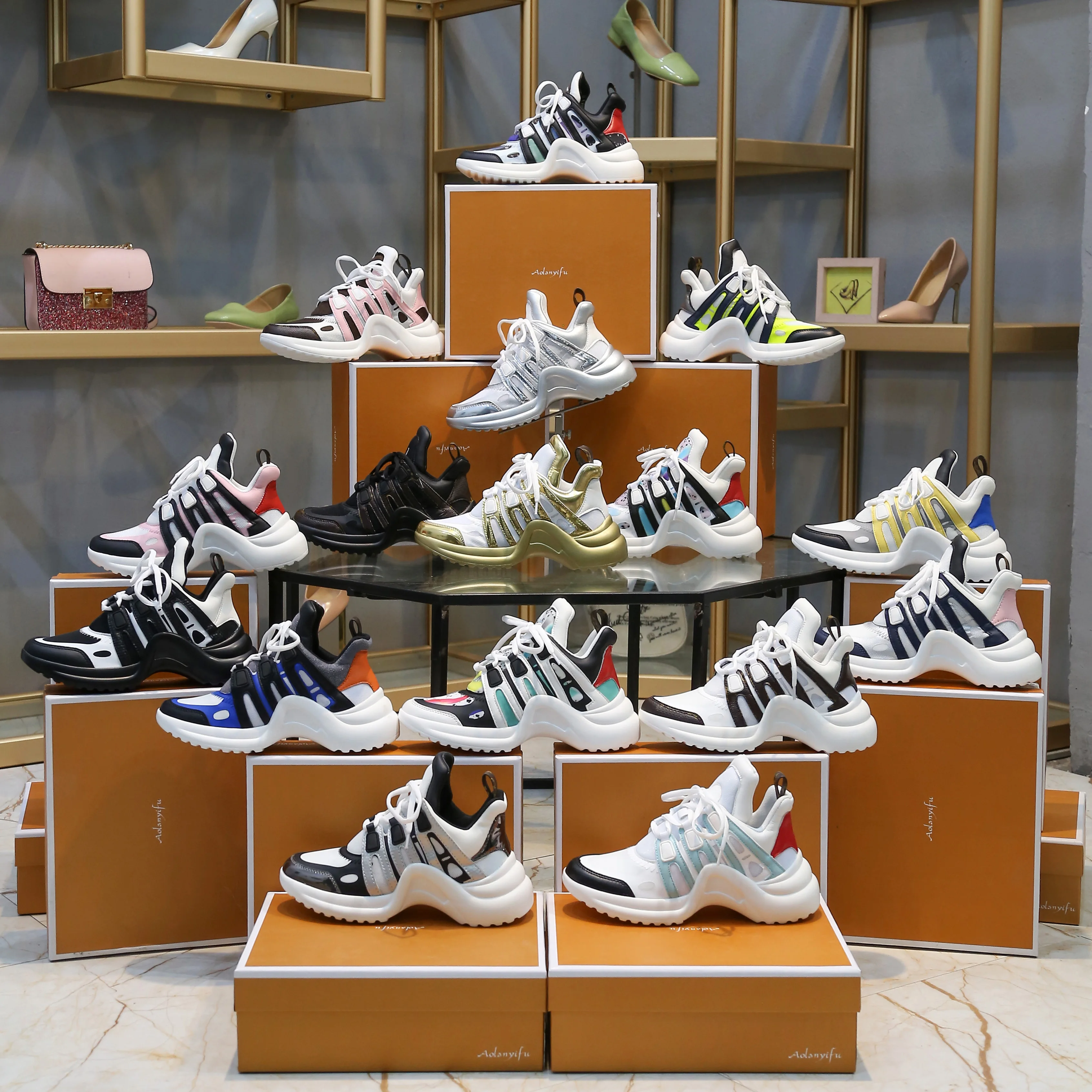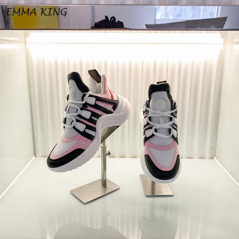 2019 EMMA KING Designer Sneakers Women Lace Up Sport Running Casual Vulcanize Shoes Leather Lycra Flats Walking Trainers :Click Here