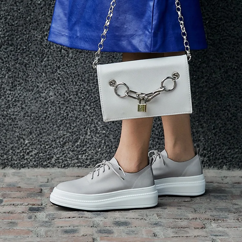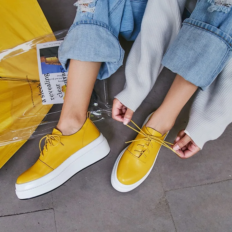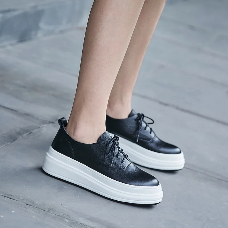 Best Price Donna-in Women Flats Shoes Platform Sneakers Shoes Genuine Leather Spring Fashion Sneakers Creepers