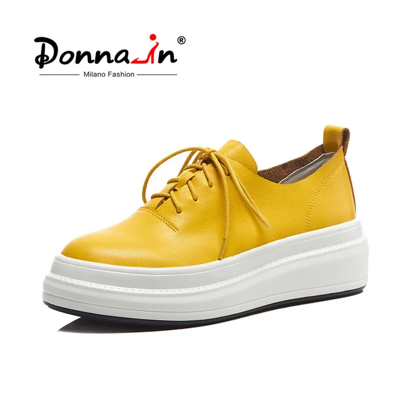 Donna-in Sneakers Women Genuine Leather Flat Low Heel Platform Ladies Lace Up Fashion Breathable Shoes Women 2019 White Nude :Click Here