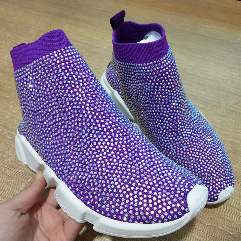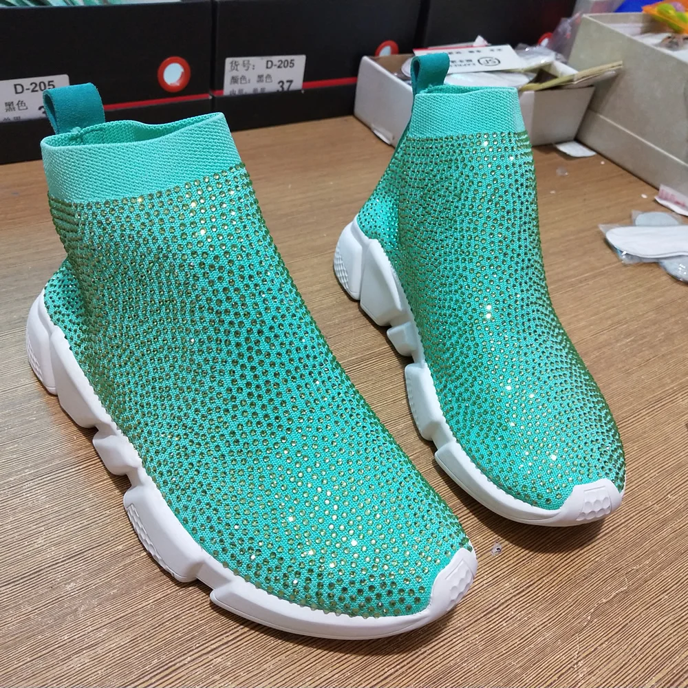 Best Product Sneakers Women Crystal Sock Boots Sport Bling Rhinestone Shoes Knitted Breathable Shoes Woman Luxur