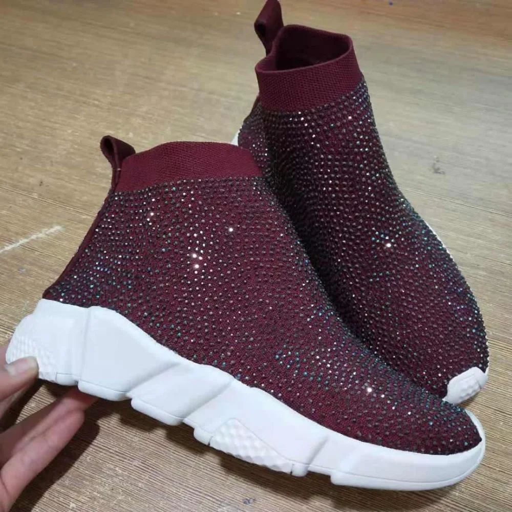 2019 Crystals Sock Sneakers Boots Sport Female Flat Polyester Spandex Ankle Length Rhinestones Sock Sneakers Casual Shoes Spring :Click Here