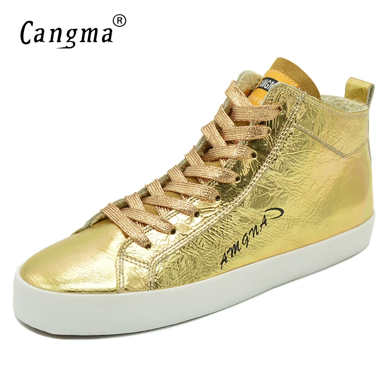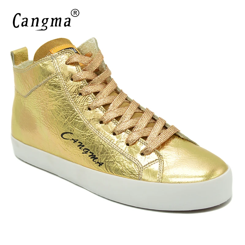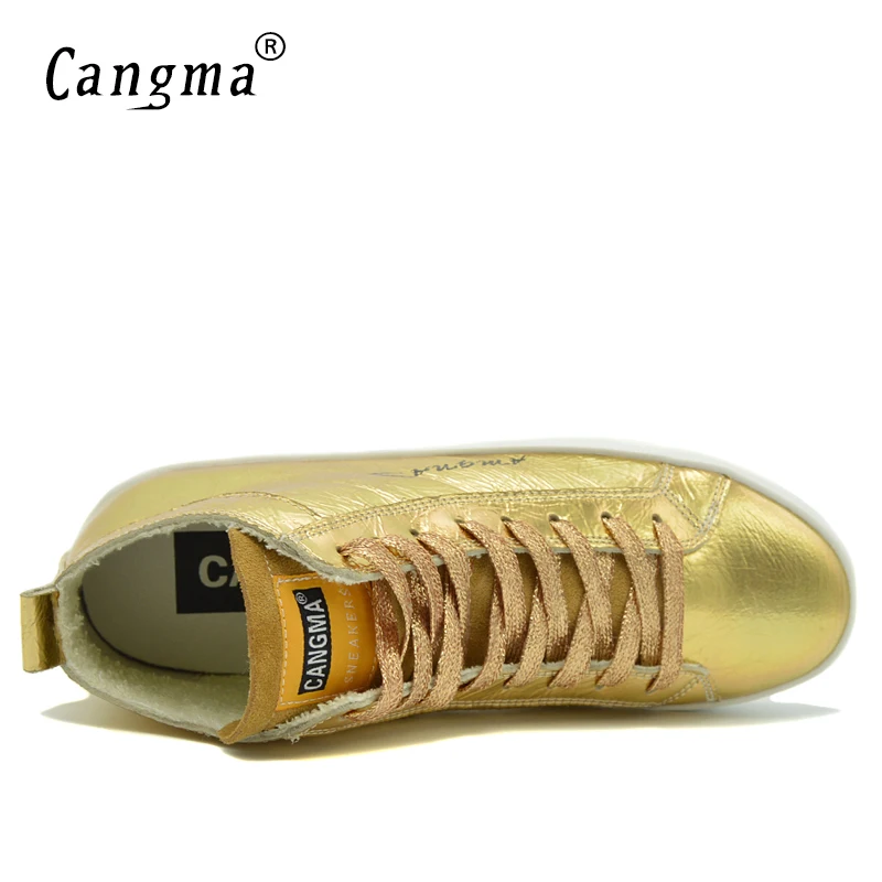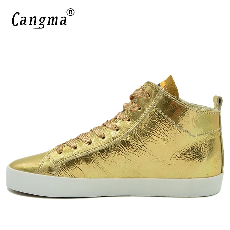Post a Comment for "New CANGMA Famous Women's Shoes Handmade Platform Sneakers Gold Flats Patent Genuine Leather Shoes Mid "