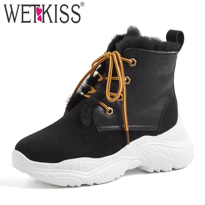 Low Price WETKIS Shearling Casual Platform Women Ankle Boots Round Toe Footwear Cow Suede Female Snow Boots S