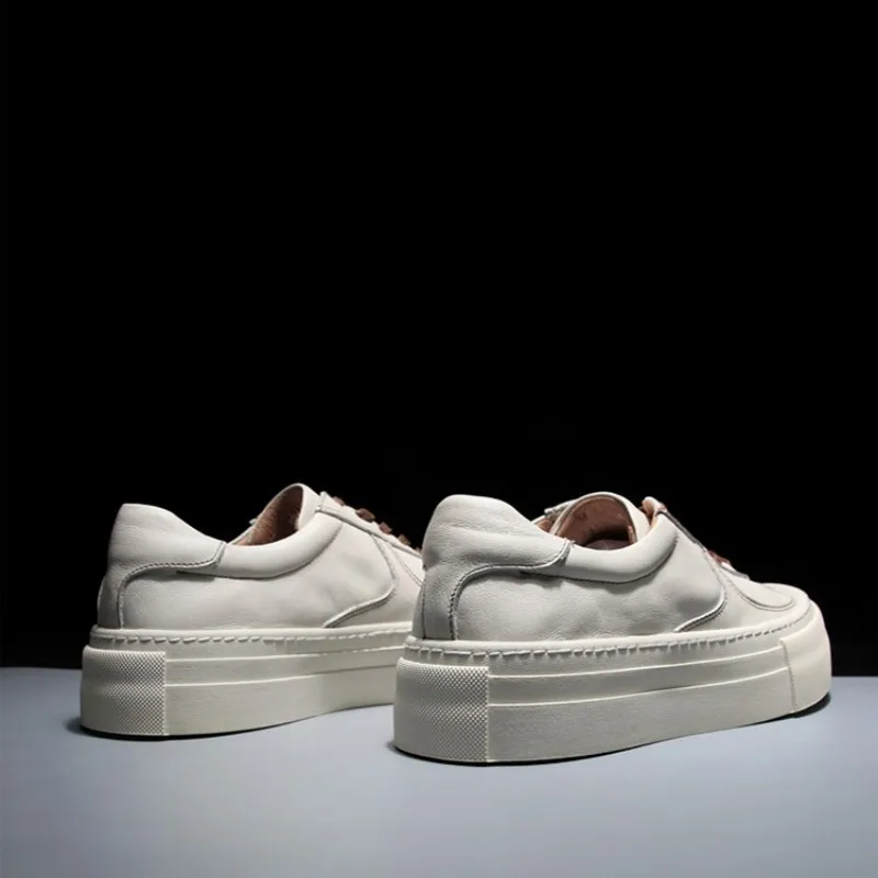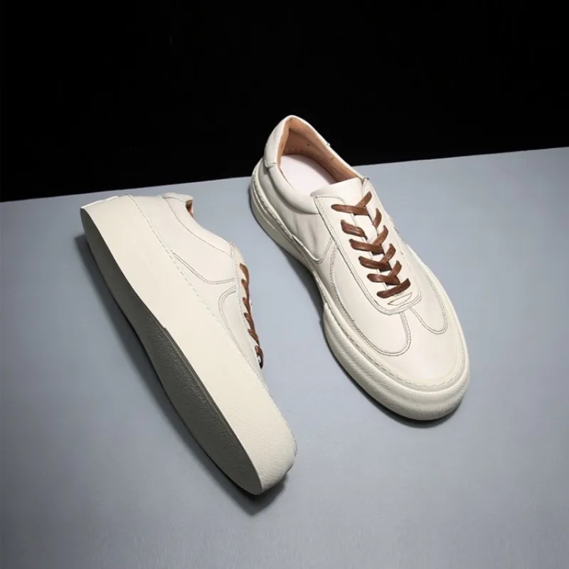 Goods Vintage Platform Height Increasing Sneakers Men Italian Round Toe Cowhide White Shoes Street Lace-U