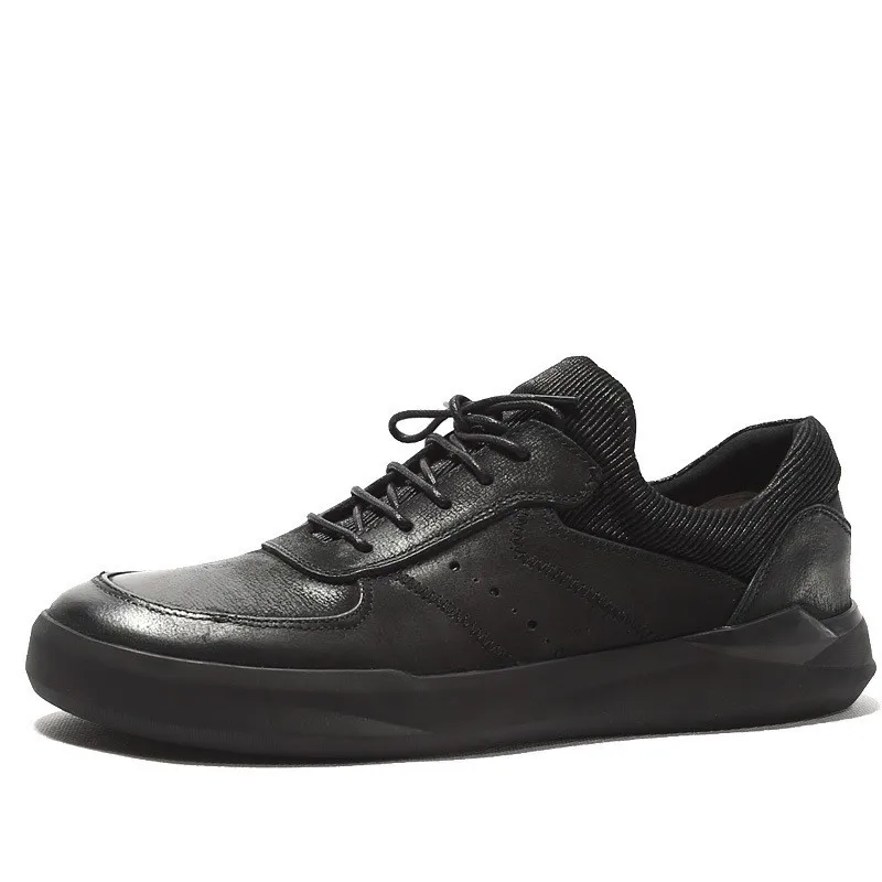 Goods 2020 Spring Autumn Sneakers Men Retro Black Real Leather Casual Shoes Round Toe Lace Up Breathable