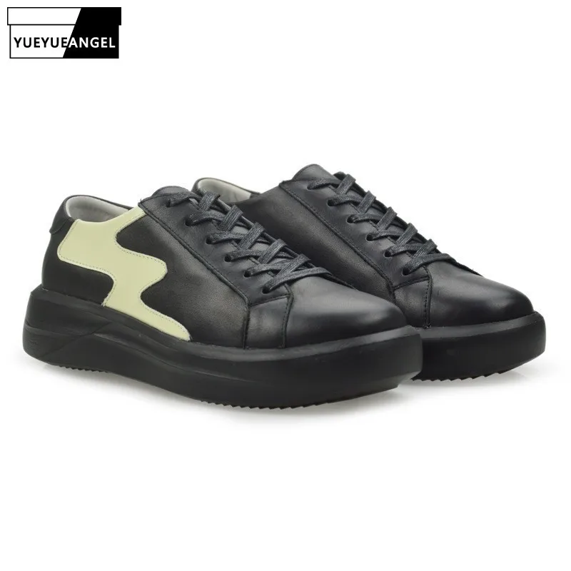 Best Real Leather Casual Flat Shoes Men Low Top Sneakers Fashion Lace Up Mixed Colors Platform Footwear