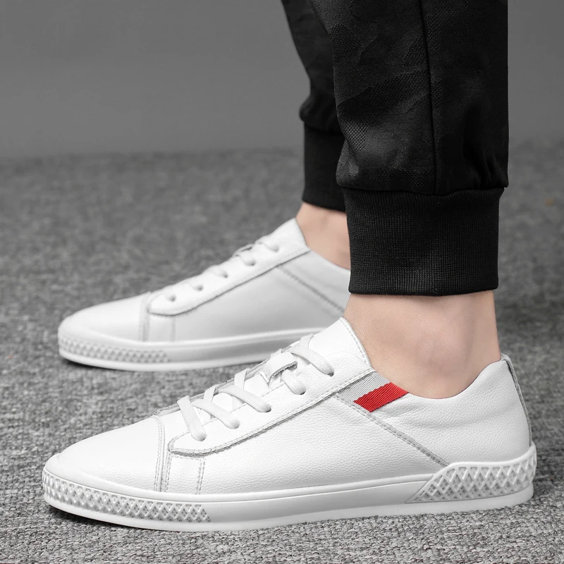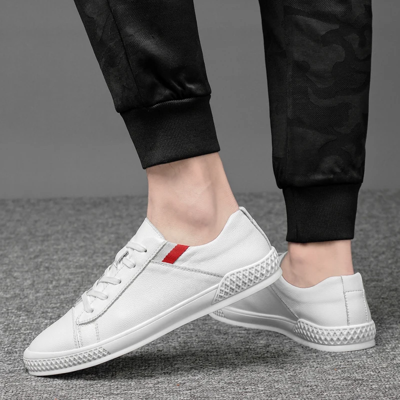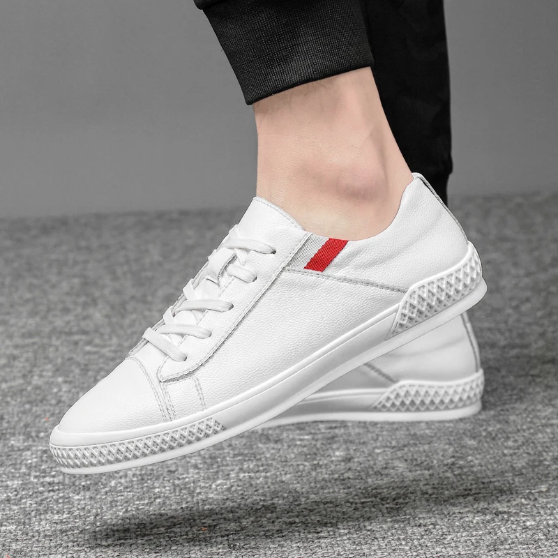 Best 2019 new spring lace-up white And Black shoes Men Genuine Leather solid color male shoes casual Men