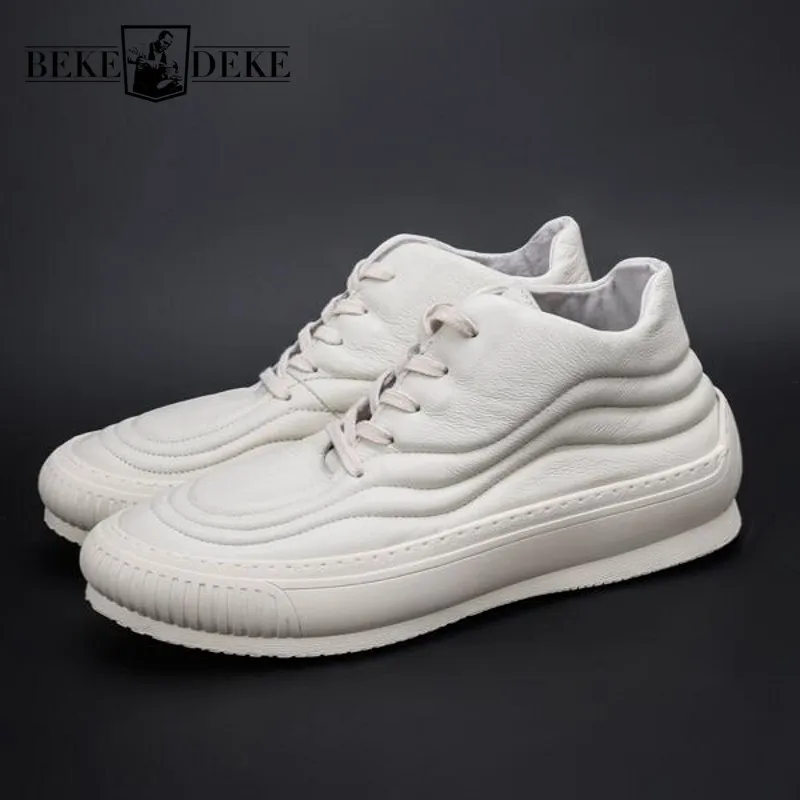 Latest Product High Top Sneakers Mens Genuine Leather Cowhide Casual Shoes Fashion Spring Autumn Round Toe Lacke T