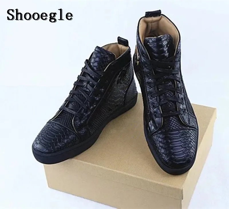 Post a Comment for "Best Price SHOOEGLE Fashion Men Lace Up High Top Shoes Black Snakeskin Sneakers Pattern Ankle Boots High Quali "