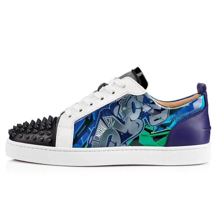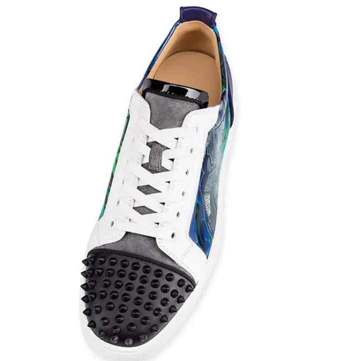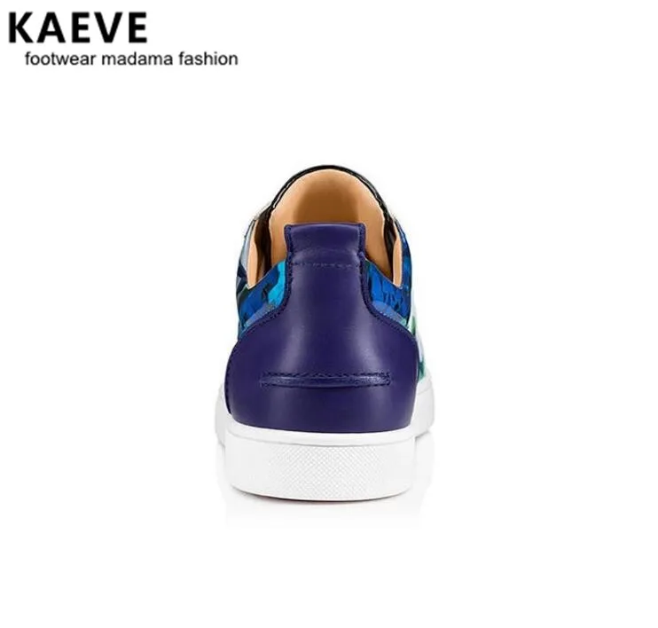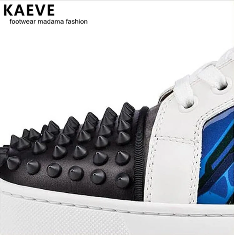 2018 Kaeve Spikes Rivets Mixcolors Patchwork Leather Studded Men Casual Flower Printing Flats Lace Up Hommes Chaussures Sneakers :Click Here