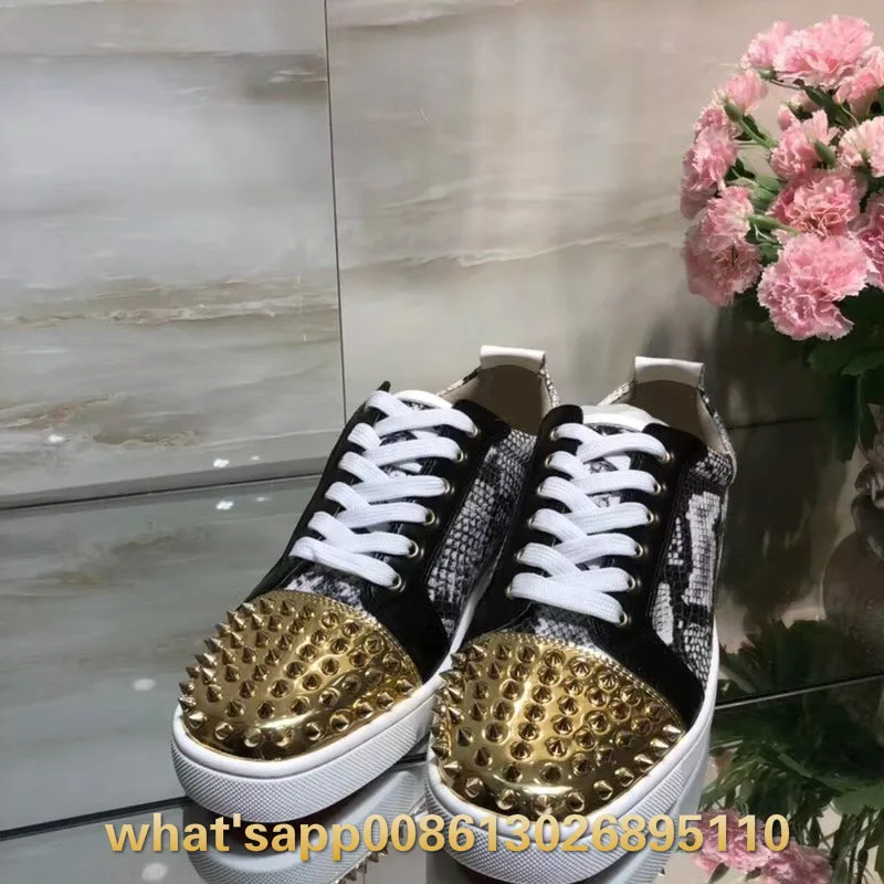 Post a Comment for "New Product Red bottom Designer Sneakers Low Cut Spikes Flats Shoes Red Bottom For Men and Women Leather Sneake "